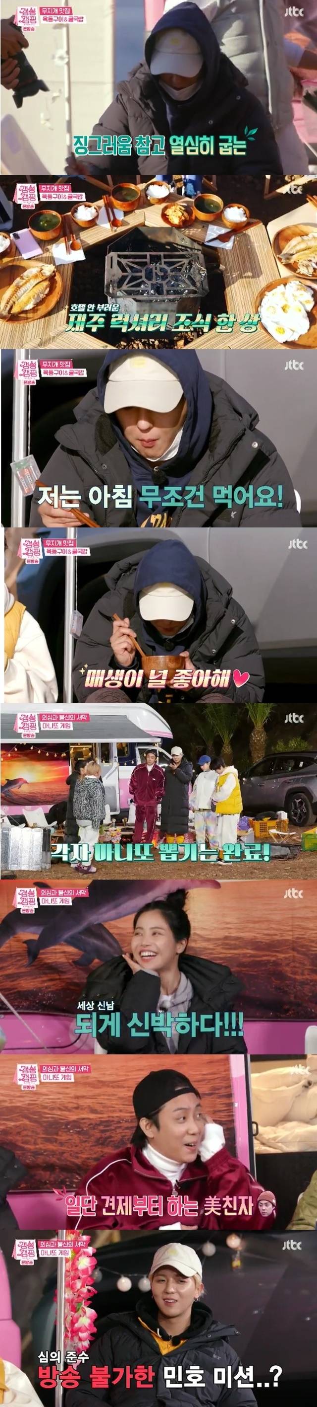 1월 8일 방송된 JTBC '갬성캠핑'에서는 게스트 은지원, 송민호가 함께 하는 제주도에서의 마지막 날이 그려졌다.