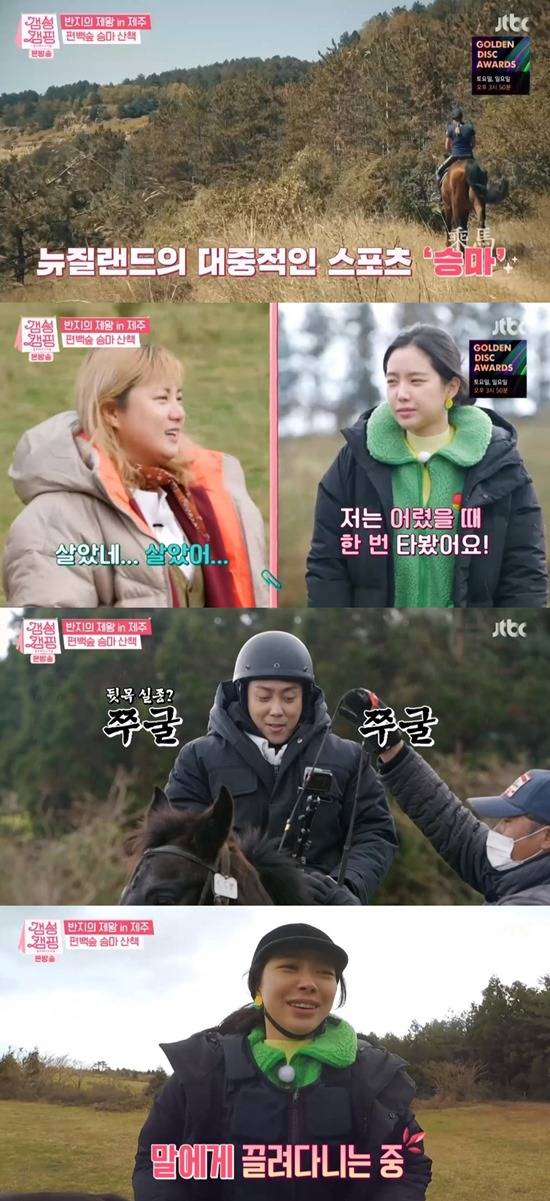 8일 방송된 JTBC '갬성캠핑'에서는 은지원, 송민호가 게스트로 출연해 제주도 편백숲으로 승마를 체험했다.
