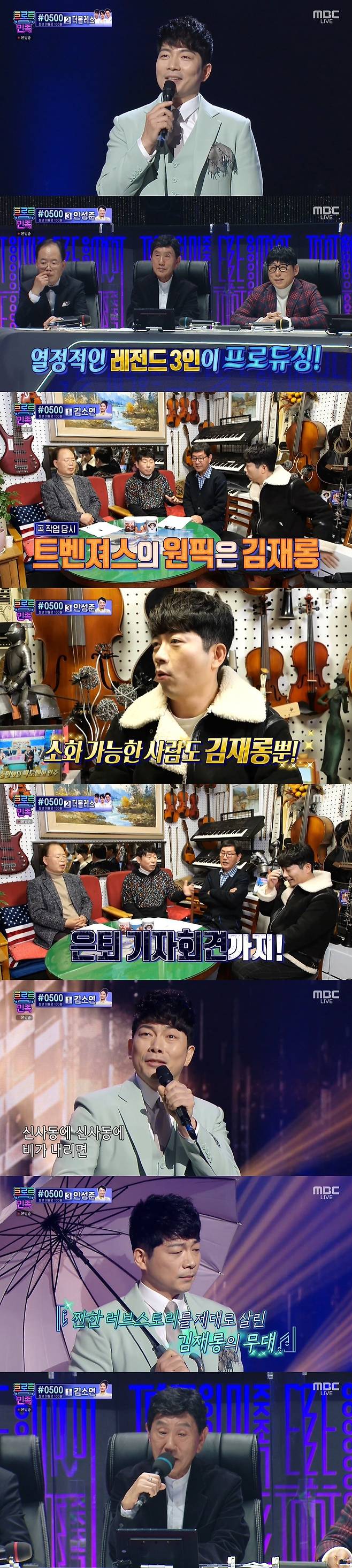 김재롱의 무대를 보고 난 정경천 심사위원은 “고생 끝났다. 개그맨은 부업으로 하고, 가수로 꽃길만 걸으라”라과 김재롱을 응원했다. 이에 전현무도 “그러면 본캐가 김재롱이 되고 부캐가 김재욱이 되는 건가”라고 너스레를 떨어 재미를 더했다.