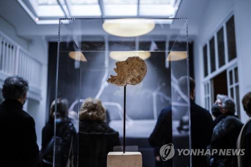 epaselect epa08926128 The sculpture entitled 'Head on a rod' by Swiss artist Alberto Giacometti is on display during a press visit of the exhibition 'Giacometti Beckett, Fail again Fail better' in Paris, France, 08 January 2021. EPA/YOAN VALAT
