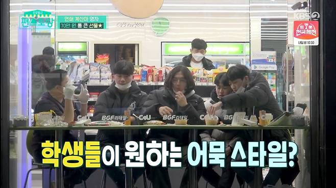 학생들에게 신메뉴 아이디어를 듣던 이영자는 "팬인데 사진 같이 찍자"는 남성 팬의 말에 "신년부터 남자가 사진 찍쟤"라며 즐거워했다. 그러면서 "남자가 다가와서 연초부터 잘 풀리는 줄 알았다"고 말해 웃음을 자아냈다.