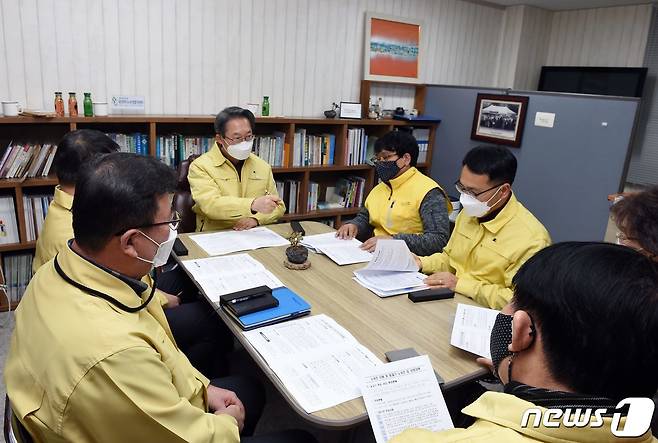 (서울=뉴스1) 이성철 기자 = 김희겸 행정안전부 재난안전관리본부장이 8일 오후 대전시 노숙인 쉼터인 종합지원센터를 방문해 김의곤 센터장으로부터 노숙인 지원시설 겨울철 한파 대책 및 애로사항을 청취하고 있다. (행안부 제공) 2021.1.8/뉴스1