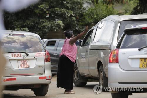 epa08926276 A woman cries as she waves at a hearse carrying a relative who died of Covid-19, outside a funeral parlour in Harare, Zimbabwe, 08 January 2021. Harare has become the epicentre of the Covid-19 pandemic with 700 positive cases being recorded every day. The country is on the third day of a 30 day lockdown imposed on 02 January 2021 by the country's vice -president Constantine Chiwenga, who is also the health minister.