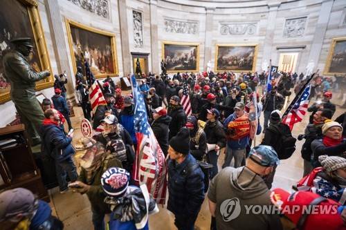epa08926301 Supporters of US President Donald J. Trump and his baseless claims of voter fraud run through the Rotunda of the US Capitol after breaching Capitol security during their protest against Congress certifying Joe Biden as the next president in Washington, DC, USA, 06 January, 2020 (issued 08 January 2020). On 08 January Assistant House Speaker Katherine Clarke said the House will move to impeach President Trump if the Vice President and Cabinet do not remove him on their own. EPA/JIM LO SCALZO