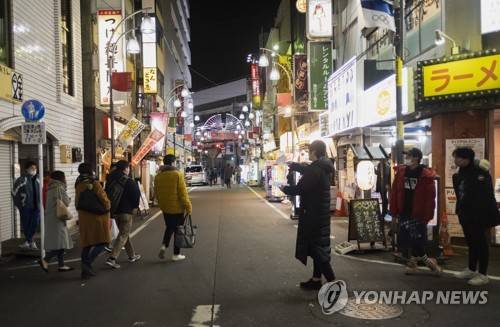 Workers, right, promote their restaurants on the street on the first day of a coronavirus state of emergency in Tokyo on Friday, Jan. 8, 2021. Japan declared a state of emergency in Tokyo and three nearby prefectures Thursday, as coronavirus cases continued to surge in the nation. The declaration asks restaurants and bars close by 8 p.m. while drinks won't be served after 7 p.m. (AP Photo/Hiro Komae)
