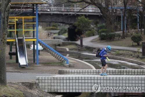 A boy walks through a park on his way home in Tokyo on Friday, Jan. 8, 2021. Japan declared a state of emergency in Tokyo and three nearby prefectures Thursday, as coronavirus cases continued to surge in the nation. The declaration asks restaurants and bars close by 8 p.m. while drinks won't be served after 7 p.m. (AP Photo/Hiro Komae)