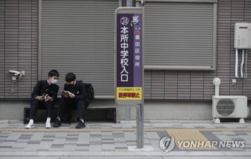 Junior high students read their manga comic books while waiting at a bus stop on their way home in Tokyo on Friday, Jan. 8, 2021. Japan declared a state of emergency in Tokyo and three nearby prefectures Thursday, as coronavirus cases continued to surge in the nation. The declaration asks restaurants and bars close by 8 p.m. while drinks won't be served after 7 p.m. (AP Photo/Hiro Komae)