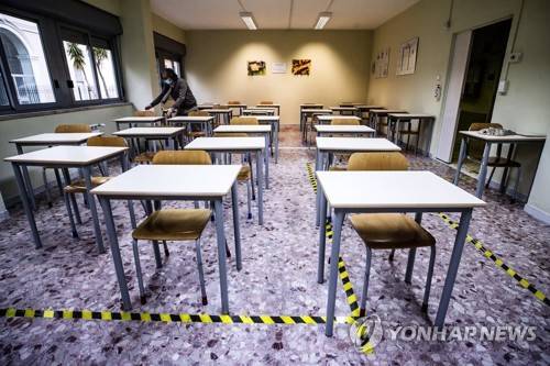 epa08926328 A room at the Isacco Newton High School is prepared for the resumption of teaching in presence of students in Rome, Italy, 08 January 2021. Classrooms, gyms and corridors of schools are prepared for the resupmtion of in-presence teaching during the ongoing coronavirus COVID-19 pandemic in Italy. EPA/ANGELO CARCONI