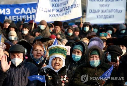 epa08926349 Kyrgyz voters attend a meeting with presidential candidate Sadyr Japarov on a square in Bishkek, Kyrgyzstan, 08 January 2021. Presidential elections and referendum on the form of government in Kyrgyzstan will be held on 10 January 2021. EPA/IGOR KOVALENKO