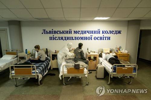Patients with COVID-19 are treated in a hospital organized in the Lviv National Medical University in Lviv, Western Ukraine, Monday, Jan. 4, 2021. The country of 42 million is recording about 9,000 new COVID-19 infections a day; more than 19,500 people have died. Ukraine imposed a wide-ranging lockdown beginning Friday Jan. 8, closing schools and entertainment venues and restaurant table service through Jan. 25. (AP Photo/Evgeniy Maloletka)
