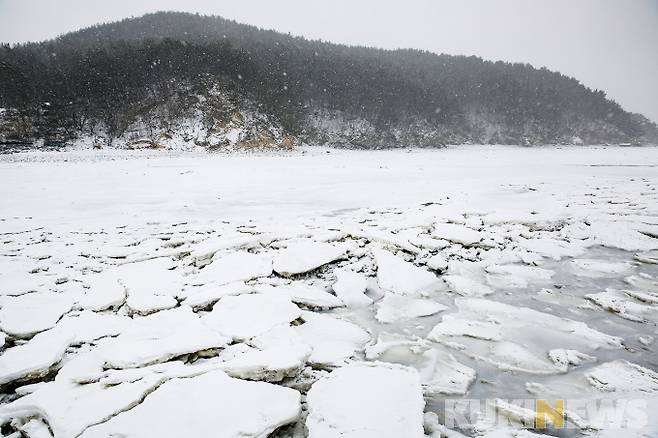[서산=쿠키뉴스] 한상욱 기자 = 지난 7일 오후 9시부터 발효된 한파경보 속 충남 서산시 지곡면 중왕리 인근 서산 가로림만 바닷물이 얼어붙었다.