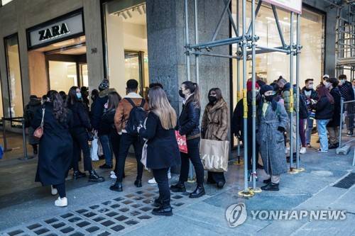 epa08926650 People go out shopping on Winter Sales in Turin, northern Italy, 07 January 2021, amid the coronavirus pandemic. EPA/Tino Romano