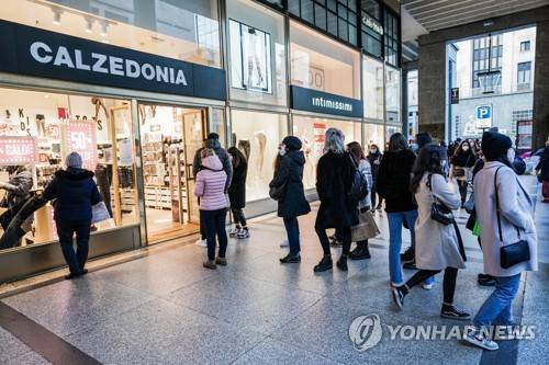 epa08926649 People go out shopping on Winter Sales in Turin, northern Italy, 07 January 2021, amid the coronavirus pandemic. EPA/Tino Romano