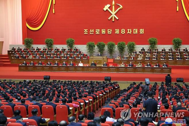 (평양 조선중앙통신=연합뉴스) 지난 8일 평양에서 노동당 제8차 대회 4일차 회의가 열렸다고 조선중앙통신이 9일 보도했다. 2021.1.9