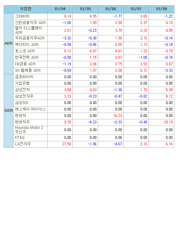 [표]해외 한국 DR 주간등락률