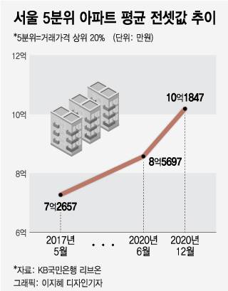 서울 고가 아파트 평균 전셋값 10억 넘었다