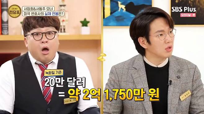 1월 9일 방송된 SBS 플러스 '쩐당포'에서 서동주는 미국 로펌 초봉을 털어놨다.