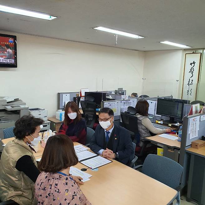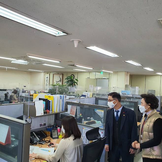 정병선 과학기술정보통신부 제1차관이 8일 오후 경기도 과천시 정부과천청사 과기정통부 민원실을 방문, 감염병 확산에 취약한 밀집환경에서 근무하는 상담원 의견을 청취하고 방역실태를 점검했다.