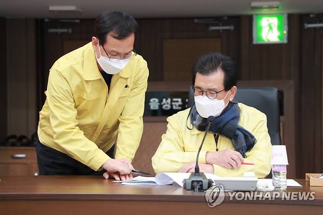 (음성=연합뉴스) 이시종 충북지사는 9일 음성시청 재난안전대책본부를 방문, 조류인플루엔자(AI) 방역 대응 상황을 보고받았다. 이 지사는 이 자리에서 "AI는 막대한 사회적 비용이 발생하는 만큼 발생농장을 면밀히 조사하고 신속한 후속 조치로 추가 발생을 막아달라"고 당부했다. 2021.1.9 [충북도 제공. 재판매 및 DB 금지]