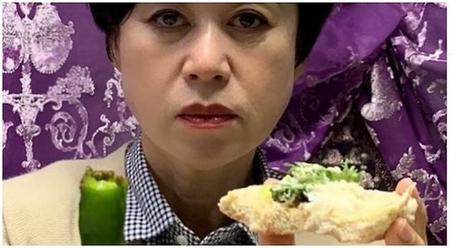 이와 함께 게재된 사진에는 박미선이 무표정한 모습으로 양손에 각각 된장에 찍은 고추와 샐러드 빵을 들고 있다.