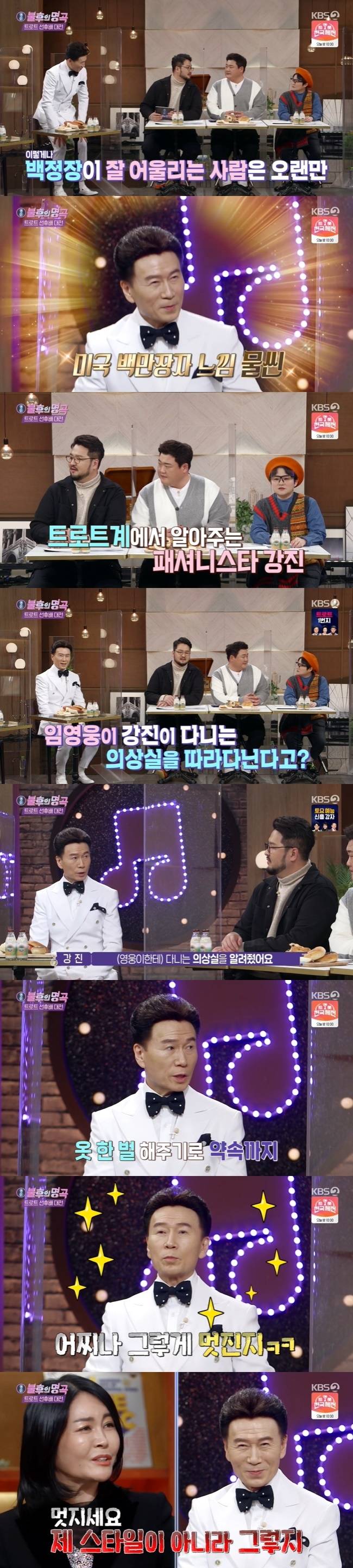 강진이 넘치는 패션 자신감을 드러내며 임영웅을 언급했다.