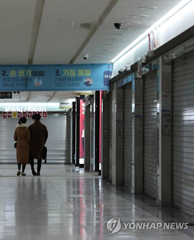 (서울=연합뉴스) 홍해인 기자 = 9일 오후 서울 강남역 지하도상가가 폐쇄돼 있다. 서울시와 서울시설공단은 강남지하도상가관리소 소속 환경미화원 1명이 이날 서초구보건소로부터 신종코로나바이러스감염증(코로나19) 확진 통보를 받으면서 강남역 지하도상가를 10일 밤 12시까지 폐쇄할 계획이다. 지하철 이용자 등의 불편을 최소화하기 위해 별도 이동 통로는 확보된 상태다. 2021.1.9