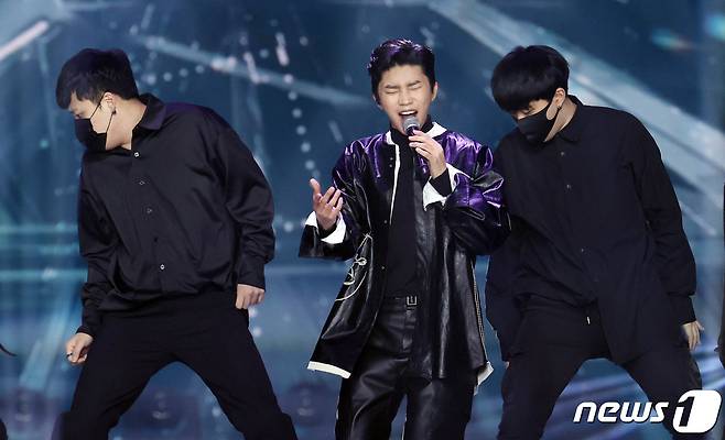 (서울=뉴스1) 김진환 기자 = 가수 임영웅이 9일 오후 경기도 고양시 일산 킨텍스에서 온택트로 진행된 '제35회 골든디스크 어워즈 with 큐라프록스' 디지털 음원 부문 포토월 행사에 참석해 멋진 공연을 선보이고 있다. (골든디스크어워즈 사무국 제공) 2021.1.9/뉴스1