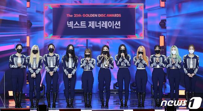 (서울=뉴스1) 김진환 기자 = 걸그룹 이달의 소녀가 9일 오후 경기도 고양시 일산 킨텍스에서 온택트로 진행된 '제35회 골든디스크 어워즈 with 큐라프록스' 디지털 음원 부문에서 넥스트 제너레이션상을 수상 후 소감을 밝히고 있다. (골든디스크어워즈 사무국 제공) 2021.1.9/뉴스1