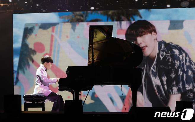 (서울=뉴스1) 김진환 기자 = 피아노 신동 박지찬 군이 9일 오후 경기도 고양시 일산 킨텍스에서 온택트로 진행된 '제35회 골든디스크 어워즈 with 큐라프록스' 디지털 음원 부문 시상식에서 축하공연을 펼치고 있다. (골든디스크어워즈 사무국 제공) 2021.1.9/뉴스1
