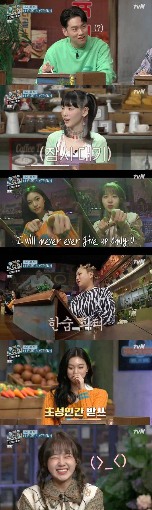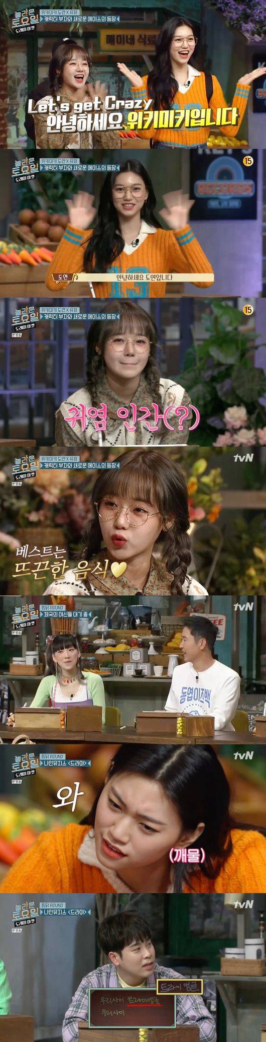 9일 오후 방송된 tvN '놀라운 토요일 - 도레미마켓'(이하 '놀토')에는 위키미키 도연과 유정이 게스트로 등장하는 모습이 그려졌다.