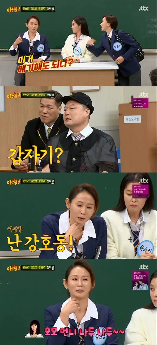 9일 방송된 JTBC 예능프로그램 '아는 형님'에서는 김선영이 강호동에게 호감을 표하는 모습이 그려졌다.
