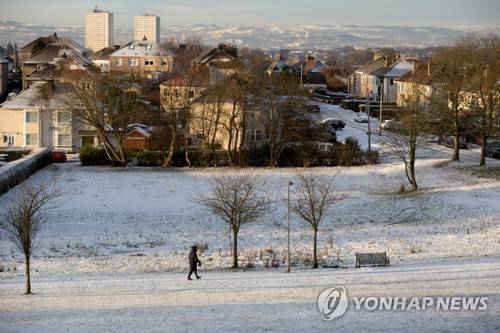 epa08928049 People out and about enjoying the snow in Garrowhill, Glasgow, Britain, 09 January 2021. EPA/Robert Perry