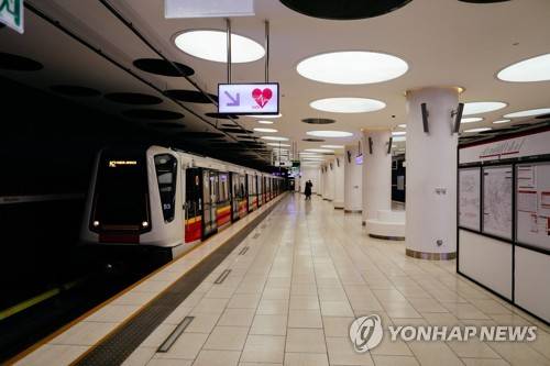 epa08928278 A view of one of the stations of the second metro line in Warsaw Poland, 09 January 2021. The Warsaw metro stations: Plocka, Mlynow and Prince Janusz have been nominated for the European Union award named after Mies van der Rohe. The award has been awarded every two years since 1987. Nominations are submitted by experts from Europe, national architects 'associations affiliated to the Architects' Council of Europe and the award advisory committee. EPA/ALBERT ZAWADA Poland Out