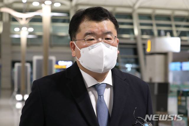 [인천공항=뉴시스]박진희 기자 = 최종건 외교부 제1차관이 9일 오후 이란에 나포·억류된 한국 국적 선박과 선원의 조기 석방을 위해 인천국제공항을 통해 출국하고 있다. 최 차관은 내일(10일) 0시35분 인천국제공항에서 출발하는 항공편으로 카타르 도하를 경유해 이란(테헤란)으로 갈 예정이다. 2021.01.09. pak7130@newsis.com