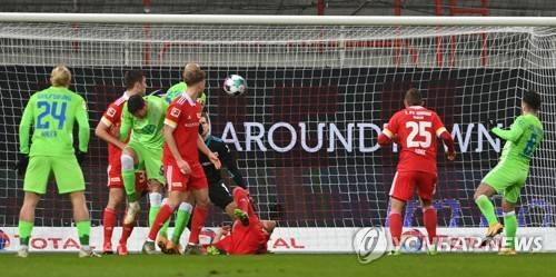 epa08928370 Wolfburg's Renato Steffen (R) scores the 0-1 goal during the German Bundesliga soccer match between 1. FC Union Berlin and VfL Wolfsburg in Berlin, Germany, 09 January 2021. EPA/FILIP SINGER / POOL CONDITIONS - ATTENTION: The DFL regulations prohibit any use of photographs as image sequences and/or quasi-video.
