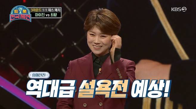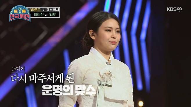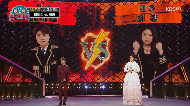 9일 오후 방송된 KBS 2TV '트롯 전국체전'에서는 3라운드 1대1 데스매치가 펼쳐졌다.
