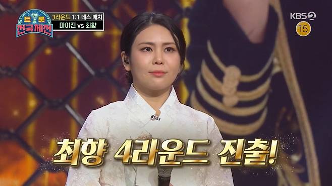 이날 가장 주목받은 서울 마이진 VS 제주 최향의 무대. 마이진은 "앞서 탈락한 동생들 몫까지 밟고 올라가겠다"며 설욕전을 선포한 상태였다. 이에 맞서는 최향은 "아쉽지만 복수 실패다. 제가 무조건 이길 것"이라며 밀리지 않는 승부욕을 드러냈다.