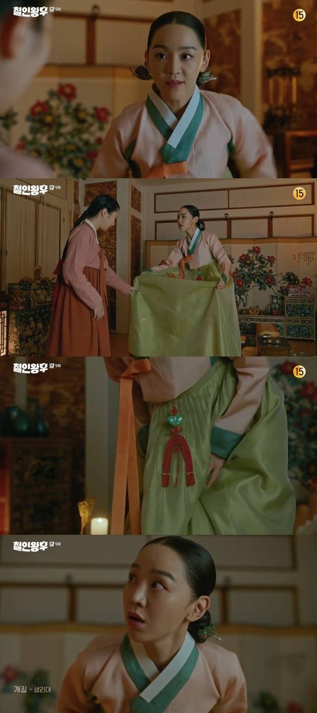 앞서 처음 몸이 바뀌었을 당시 “내가 고자라니!”를 외치며 경악했던 김소용이 여자의 몸에 완전히 적응한 뒤 다시 한 번 “내가 생리라니!”라며 경악하는 모습으로 또 한 번 전환점을 맞았다. (사진=tvN ‘철인왕후’ 캡처)
