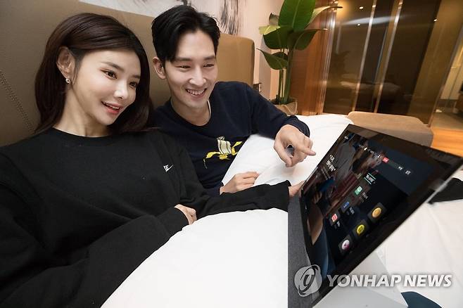 사진은 모델들이 '기가지니 테이블 TV 2'를 소개하는 모습. 2021.1.10