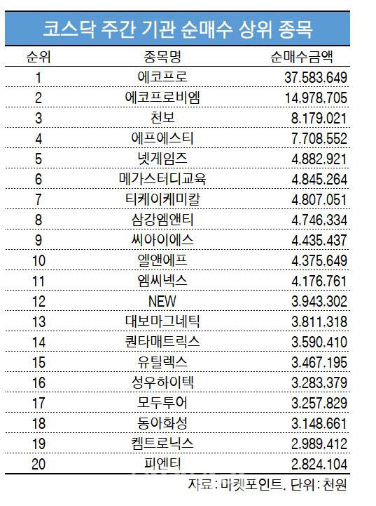코스닥 주간 기관 순매수 1위 '에코프로'
