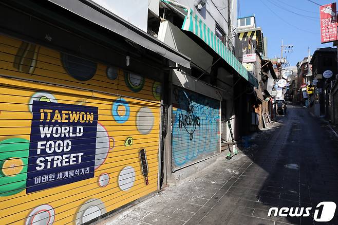 (서울=뉴스1) 이승배 기자 = 10일 오전 서울 용산구 이태원 거리가 신종 코로나바이러스 감염증(코로나19) 타격으로 한산하다.