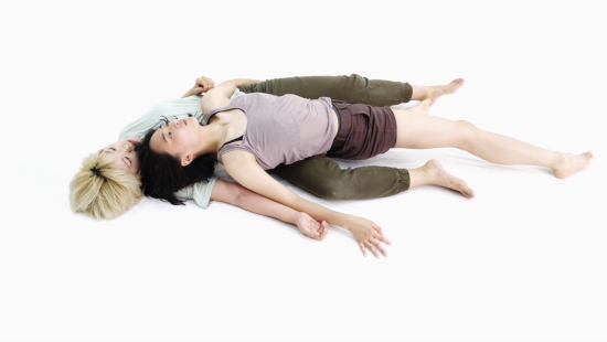 '입술 위의 깃털(2020)'은 흰 공간을 배경으로 여성 4명의 움직임을 고요하지만 강렬하게 보여주는 영상이다. 작품에 등장하는 퍼포머들이 서로의 몸을 조이고, 마찰하며 신체 대결을 벌인다. 영상과 함께 이들의 거친 숨소리와 기합이나 몸과 몸이 서로 접촉하며 발생하는 소리로 이루어진 작업이다. 이들의 동작은 레슬링이나 주짓수와 같은 격투 경기의 자세나 기술에서 착안했으며 이는 타인과의 신체 접촉이 불가피한 양육의 과정과 연관성을 가진다. 대결하다가도 애무하는 듯한 몸짓에서는 아기와의 접촉에서 경험한 사적이고 내밀한 감각을 엿볼 수 있다.