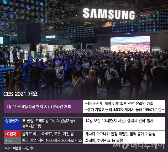 세계 최대 IT(정보·기술)·가전 전시회 'CES(Consumer Electronics Show) 2021'이 11~14일(현지시간) 열린다. 매년 1월 미국 라스베이거스에서 열리는 CES는 글로벌 IT·가전업계의 최신 제품과 서비스를 한 눈에 확인하는 행사로 자리매김했다.