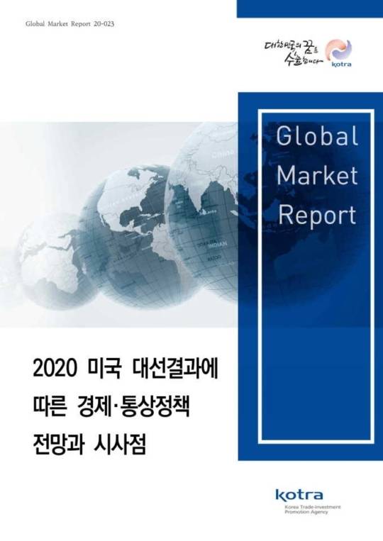 코트라는 10일 발간한 '2020 미국 대선 결과에 따른 경제·통상정책 전망과 시사점' 보고서에서 미국 대통령 선거 및 의회 선거 결과와 시사점, 신(新)정부의 정책 방향 전망, 우리나라의 대미(對美) 교역과 투자에 미치는 영향을 주요 산업별로 분석했다.