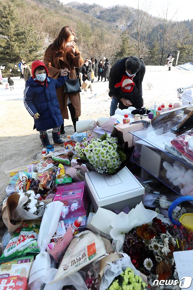(양평=뉴스1) 황기선 기자 = 10일 오후 경기 양평 하이패밀리 안데르센 공원묘원에서 시민들이 양부모의 학대로 숨진 16개월 영아 정인(가명)양을 추모하고 있다. 2021.1.10/뉴스1