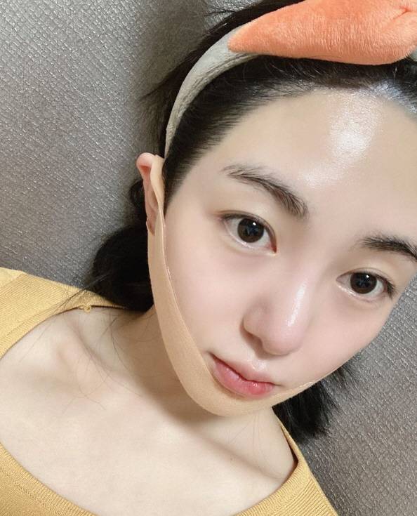 공개된 사진 속 권민아는 얼굴의 부기를 빼기 위해 턱에 팩을 하고 있는 모습이다.