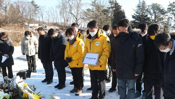 노회찬 묘소 찾은 정의당 지도부 "중대재해법 후퇴해 대단히 죄송하다"