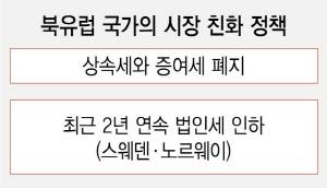 북유럽 국가들은 민간 부문의 활력과 창의성을 키우기 위해 법인세율 조정과 노동시장 개혁에도 과감히 나서고 있다. 2019년 경제협력개발기구(OECD) 회원국 중 법인세를 내린 나라는 4개 국에 그친 가운데 이중 노르웨이와 스웨덴도 있었다. 2020년에도 노르웨이와 스웨덴은 법인세를 낮춘 8개국에 포함됐다. 스웨덴 법인세율은 2020년 기준 21.4%로 한국보다도 낮은 수준이다.