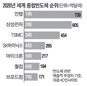 인텔은 10나노미터(㎚·1㎚는 10억분의 1m) 이하 공정 기술을 안정적 양산 단계까지 끌어올리지 못하며 삼성전자·TSMC와의 초미세 공정 경쟁에서 한발 뒤처졌다. 업계는 5나노 공정을 일찍 안정화시키고 생산 규모도 더 큰 TSMC가 인텔을 새 고객으로 맞이할 가능성이 높다고 본다. 다만 TSMC에 생산 여유가 빠듯해 삼성전자가 선택될 수 있다는 관측도 많다. 시장조사기관 IC인사이트에 따르면 인텔은 지난해까지 팹리스(반도체 설계전문기업)와 파운드리를 합친 전 세계 종합 반도체 기업 순위에서 1위를 지킨 것으로 추정된다. 하지만 초미세 공정 경쟁에서 밀린 데다 인텔 칩의 주요 고객이었던 애플, 마이크로소프트(MS) 같은 고객이 줄줄이 PC용 반도체 자체 설계를 시작하며 부진의 늪에 빠졌다.