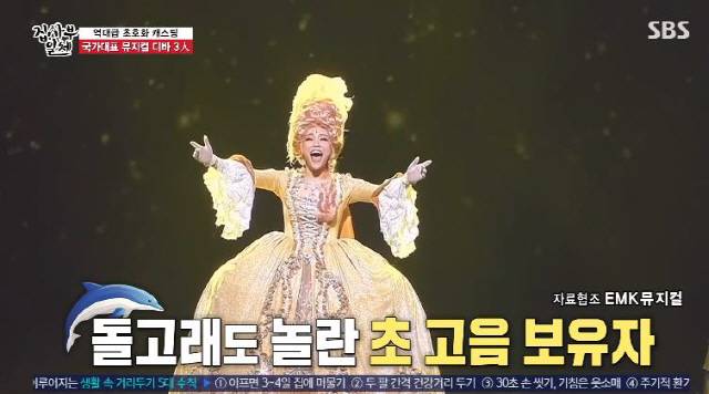 이날 멤버들은 시작부터 몰아치는 최정원의 공연에 환호했다. 최정원에 이어 '뮤덕들의 로망' 차지연도 등장했다. 그때 신성록이 스포트라이트 아래 섰다. 역시 뮤지컬 배우로 활동 중인 신성록은 '언제나 그대 곁에'를 열창했다. 메르세데스로 노래를 이어받은 차지연은 무대를 꽉 채우는 존재감으로 환호성을 자아냈다.